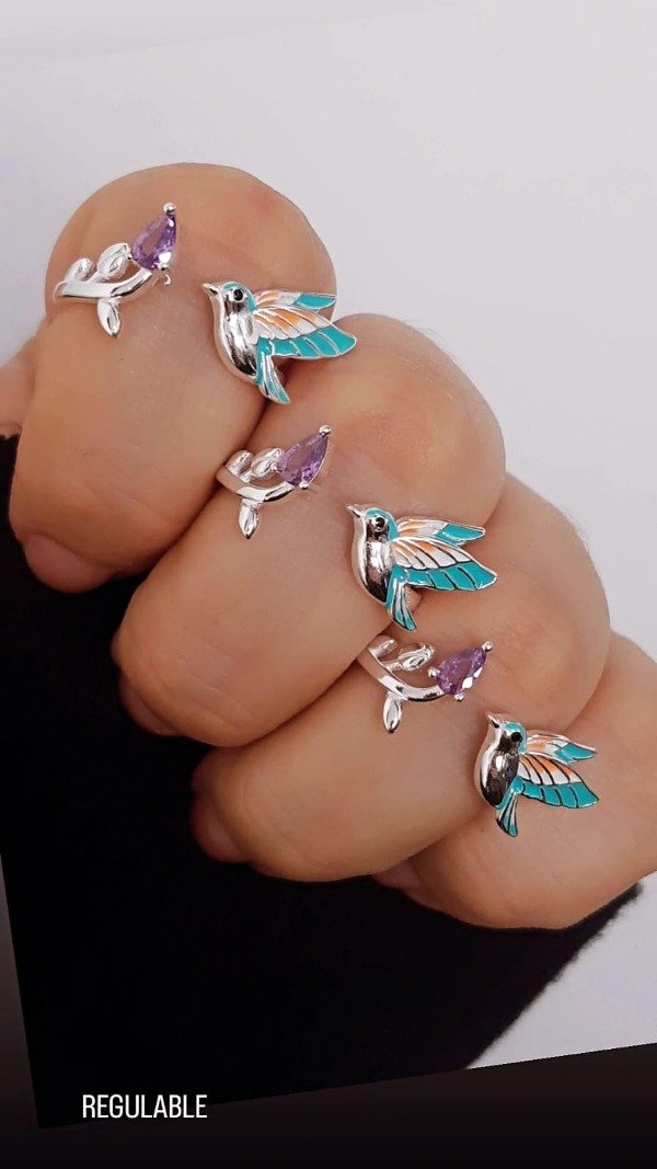 ANILLO DE COLIBRI AJUSTABLE - TRABAJO: ESMALTADO Y CIRCONES