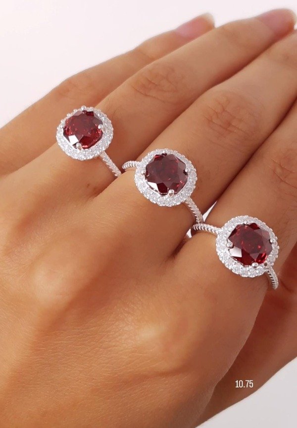ANILLO CON MICROCUBIC Y CIRCON ROJO CENTRAL