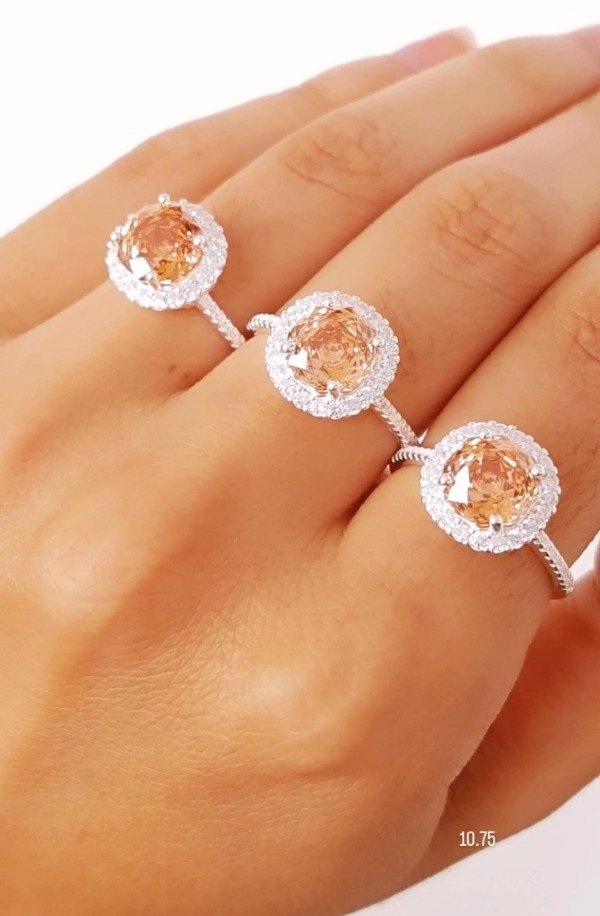 ANILLO CON MICROCUBIC Y CIRCON AMBAR CENTRAL