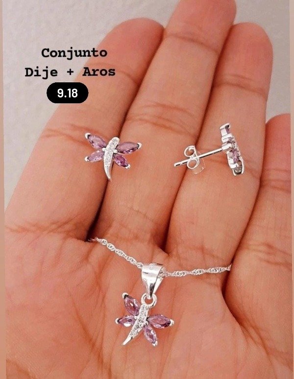 CONJUNTO CON MICROCUBIC CRISTAL Y CUBIL LILAS